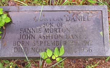 ![]() SAM MORTON DANIEL SON OF FANNIE MORTON & JOHN ASHTON DANIEL BORN SEPTEMBER 29, 1912 DIED NOVEMBER 14, 1956 |