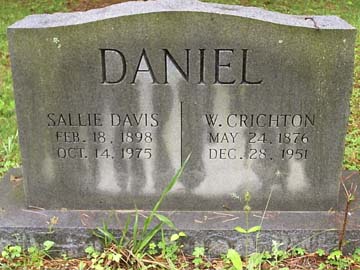 ![]() DANIEL WINFIELD CRICHTON, JR JUNE 2, 1927 MAY 17, 2002 Winfield Crichton Daniel, Jr. was the son of Winfield Crichton Daniel and Sallie S. Davis. |