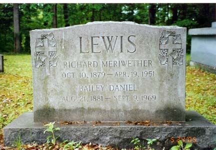 RICHARD MERIWETHER OCT. 10, 1879 - APR. 19, 1951 BAILEY DANIEL AUG. 21, 1881 - SEPT. 9, 1969 Bailey Daniel Lewis was the daughter of Nathaniel Beverley Daniel and Harriet Bailey Bullock |