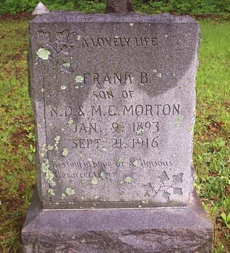 A LOVELY LIFE FRANK B. SON OF N.D. & M.C. MORTON JAN. 9, 1893 SEPT. 21, 1916 Resting in hope of A Glorious Resurrection |