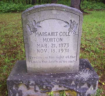![]() MARGARET COLE MORTON MAR. 21, 1873 NOV. 18, 1931 Precious in the sight of the Lord is the death of his saints |
