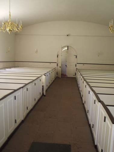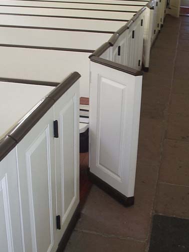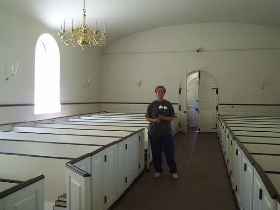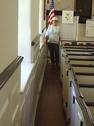 | The side aisles, where servants and slaves stood during services, were very narrow! (That's Beverly.)