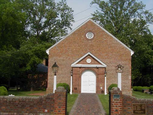 A new Upper Chapel was eventually built in the early 1700s, at a spot reportedly about 1/2 mile away from the original (although the exact location of the original Upper Chapel is not firmly known). The second Upper Chapel was given over to a Baptist congregation in about 1845 and is today's Hermitage Baptist Church. For some pictures of the church today, click here.