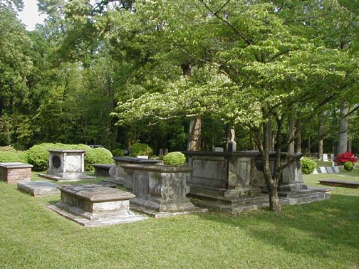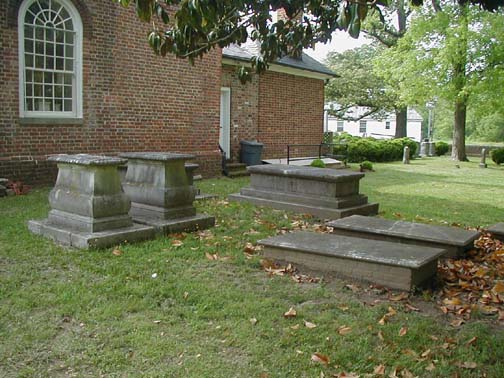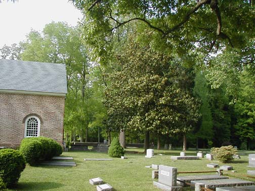 | Early Grymes and Yates graves are on the south side of the building. | |