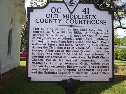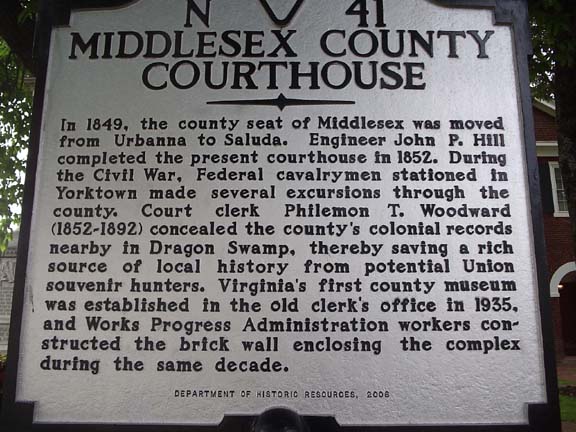 This page is about our visit to the Courthouses and the Daniel involvement in the Courts of Middlesex. The extant courthouses are the one at Urbanna (1740s), the later one at Saluda (1850s), and its annex (1996). However, the history of the formation of Middlesex County and the struggles to build the first courthouses is so fascinating and dramatic. Click below to read a history of: